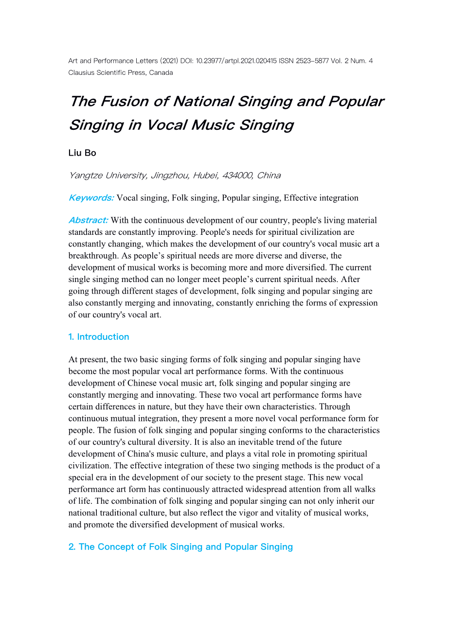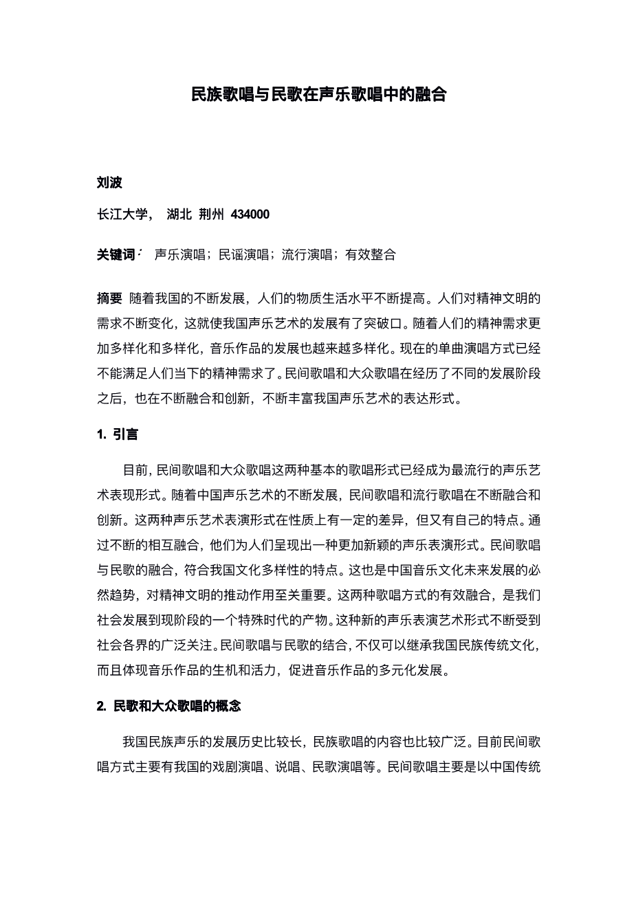 民族歌唱与民歌在声乐歌唱中的融合外文翻译资料