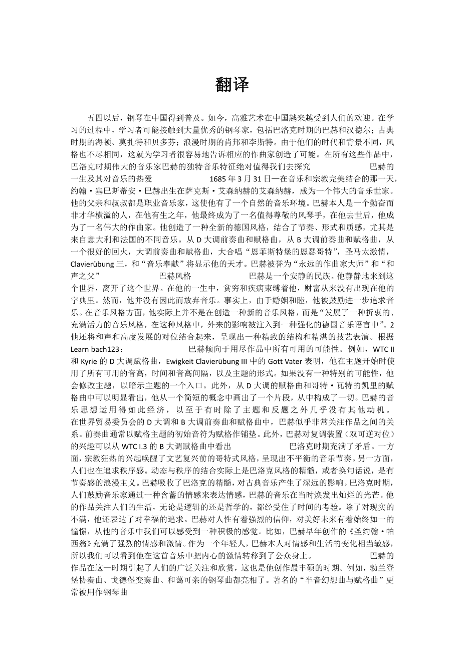 Piano was popularized in China after the May Fourth Movement. Nowadays high art is embracing more and more people in China. In the way of learning, learners may have accessed to piles of outstanding pianist, including Bach and Handel from the Baroque period; Haydn, Mozart and Beethoven from the classical period; and Chopin and Liszt from the Romantic period. Since their eras and backgrounds differ and so do their styles, it create a possibility for learners to tell the corresponding composer easily. In all of them, the great musician Bach in Baroque definitely worth looking into for his unique music characteristics