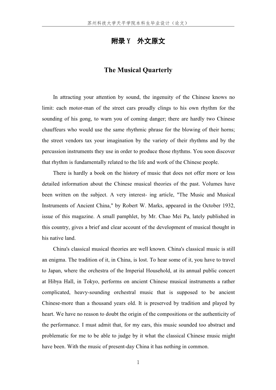 《音乐季刊》外文翻译资料 2023-09-11 11:33:17 英语原文共 5 页,剩余内容已隐藏,支付完成后下载完整资料 英语译文共 4 页,剩余内容已隐藏,支付完成后下载完整资料 资料编号:[610318],资料为PDF文档或Word文档,PDF文档可免费转换为Word 您需要先支付 30元 才能查看全部内容!立即支付 发小红书推广免费获取该资料资格。点击链接进入获取推广文案即可: Ai一键组稿 | 降AI率 | 降重复率 | 论文一键排版 PREVIOUS NEXT 您可能感兴趣的文章 浅析“ばかりか”和“どころか”的异同开题报告 日本刀の模様开题报告 日本の化粧史について文献综述 颜色词“紫”的语义考察及文化内涵分析文献综述 中日独身問題の分析と考察开题报告 日本の文学作品から見る日本の癒やし系文化开题报告 関ヶ原の戦いに関する再考察ー正当性を中心に文献综述 中国古诗词的意象表达与翻译——以许渊冲先生的古诗词译著为例开题报告 论林纾小说翻译中的豪杰译现象——以《黑奴吁天录》及《巴黎茶花女遗事》为例文献综述 “一带一路”国家来华留学生择校影响因素研究—以江苏省为例开题报告