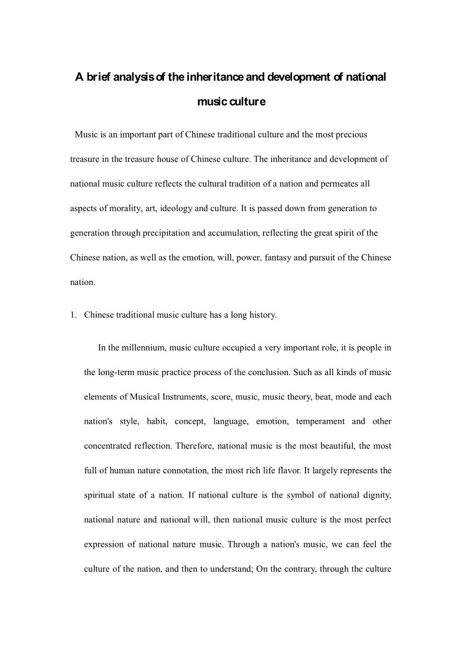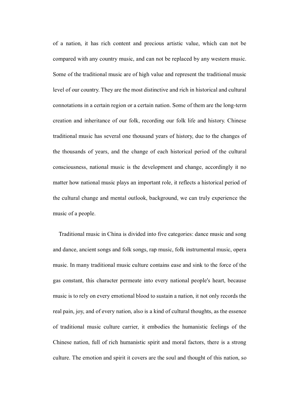 浅析民族音乐文化的传承与发展外文翻译资料 2023-09-11 11:33:37 英语原文共 4 页,剩余内容已隐藏,支付完成后下载完整资料 英语译文共 7 页,剩余内容已隐藏,支付完成后下载完整资料 资料编号:[610317],资料为PDF文档或Word文档,PDF文档可免费转换为Word 您需要先支付 30元 才能查看全部内容!立即支付 发小红书推广免费获取该资料资格。点击链接进入获取推广文案即可: Ai一键组稿 | 降AI率 | 降重复率 | 论文一键排版 PREVIOUS NEXT 您可能感兴趣的文章 浅析“ばかりか”和“どころか”的异同开题报告 日本刀の模様开题报告 日本の化粧史について文献综述 颜色词“紫”的语义考察及文化内涵分析文献综述 中日独身問題の分析と考察开题报告 日本の文学作品から見る日本の癒やし系文化开题报告 関ヶ原の戦いに関する再考察ー正当性を中心に文献综述 中国古诗词的意象表达与翻译——以许渊冲先生的古诗词译著为例开题报告 论林纾小说翻译中的豪杰译现象——以《黑奴吁天录》及《巴黎茶花女遗事》为例文献综述 “一带一路”国家来华留学生择校影响因素研究—以江苏省为例开题报告