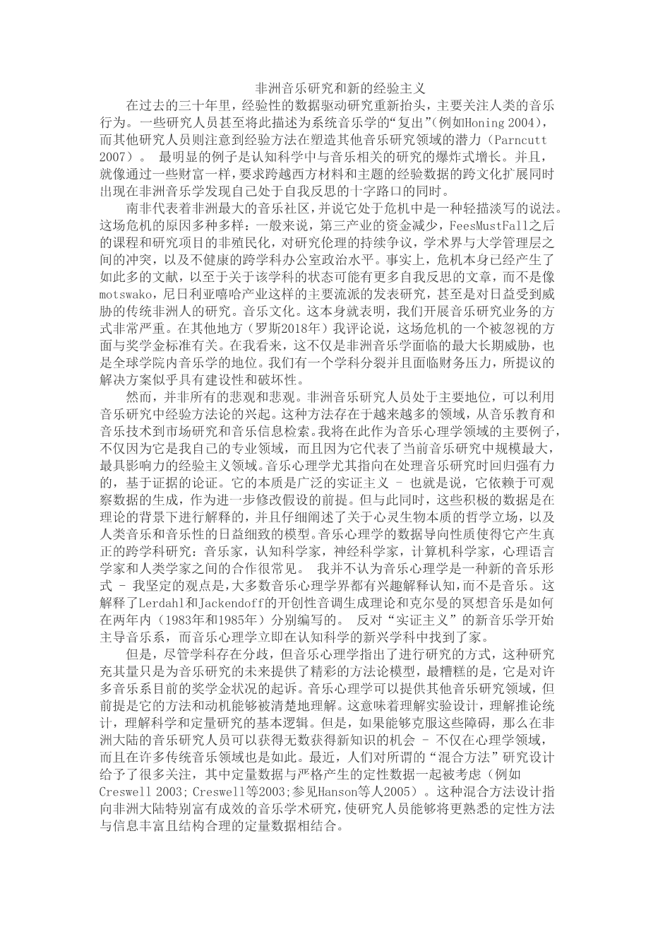 非洲音乐研究和新的经验主义外文翻译资料 2023-09-11 11:36:32 英语原文共 5 页,剩余内容已隐藏,支付完成后下载完整资料 英语译文共 3 页,剩余内容已隐藏,支付完成后下载完整资料 资料编号:[610259],资料为PDF文档或Word文档,PDF文档可免费转换为Word 您需要先支付 30元 才能查看全部内容!立即支付 发小红书推广免费获取该资料资格。点击链接进入获取推广文案即可: Ai一键组稿 | 降AI率 | 降重复率 | 论文一键排版 PREVIOUS NEXT 您可能感兴趣的文章 浅析“ばかりか”和“どころか”的异同开题报告 日本刀の模様开题报告 日本の化粧史について文献综述 颜色词“紫”的语义考察及文化内涵分析文献综述 中日独身問題の分析と考察开题报告 日本の文学作品から見る日本の癒やし系文化开题报告 関ヶ原の戦いに関する再考察ー正当性を中心に文献综述 中国古诗词的意象表达与翻译——以许渊冲先生的古诗词译著为例开题报告 论林纾小说翻译中的豪杰译现象——以《黑奴吁天录》及《巴黎茶花女遗事》为例文献综述 “一带一路”国家来华留学生择校影响因素研究—以江苏省为例开题报告