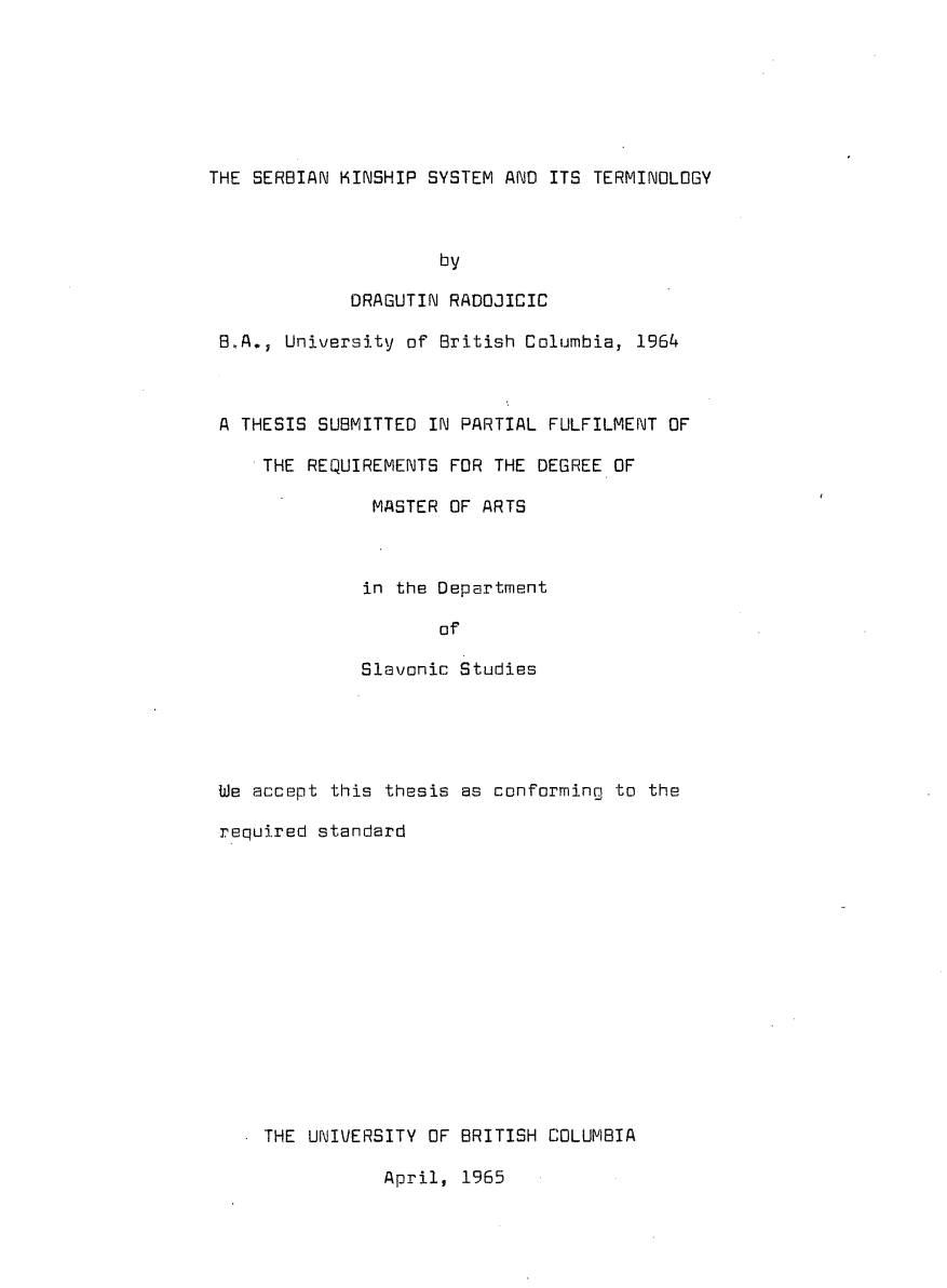 尽管塞尔维亚人写了许多人类学著作,但没有一本关于血缘关系的完整著作。这个原因是很难解释的。事实上,没有人类学家有足够的兴趣去研究亲属问题并去撰写文章。因此,这篇论文不是作为文学编撰的。论文中包含的材料主要是我个人的观察,不能完全标示为“实地工作”,因为这些观察是在历时的时间内进行的,在论文选题之前就完成了。除了一般理论著作外,论文没有做任何特定的考证工作。除个人回忆,笔者试图从尽可能多的资料提供者那里收集更多信息。笔者一开始就放弃了问卷调查的收集方法,因为该系统必须是统计和真实的,仅仅能从寻求到的信息中获取特别小的一部分信息。于是笔者非正式地采访了一些资料提供者。在无法进行面对面采访的情况下,在塞尔维亚和外界通过联系方式联系信息提供者。笔者对本文中所包含信息的准确性负责。