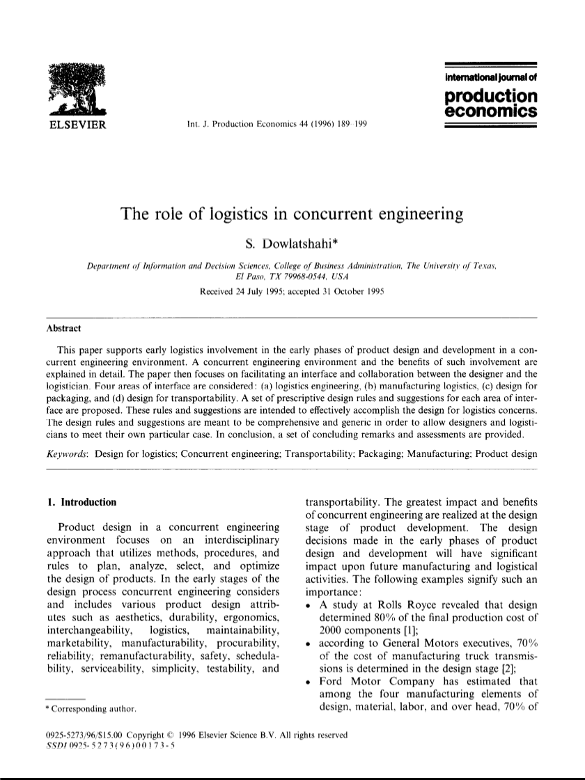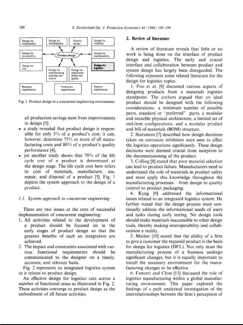 回顾文献显示,在产品设计和物流的接口方面很少有新的成果出现。在产品的早期,产品和系统设计的很重要的沟通和协作被在很大程度上无视了。
