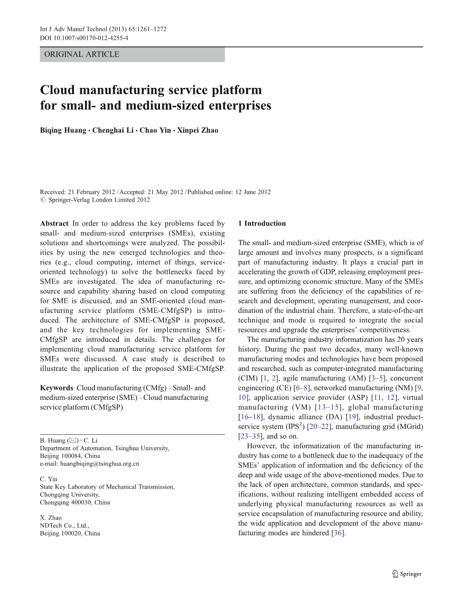 摘要:中小企业面临许多的问题,本文针对这些问题,分析了现有的解决方案的不足之处。现在很多研究者正在对采用新技术和理论(例如,云计算、物联网、面向服务的技术)来对解决中小企业面临的瓶颈问题的进行研究。基于云计算的中小企业制造资源和能力的共享问题已经被广泛讨论,并且有专家已经提出了面向中小企业的云制造服务平台(CMFGSP)。本文详细介绍了中小企业CMFGSP技术实现的关键。同时主要对中小企业实施云制造服务平台的挑战进行讨论。通过案例研究来说明SME-CMFGSP在中小企业中的应用。