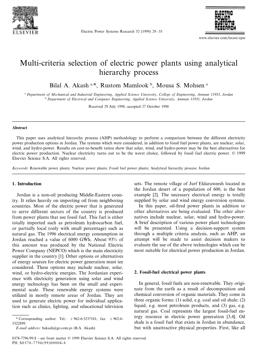 选择或代表第三级的成本与效益的各种层次技术,要考虑在约旦的电力生产。此外,化石燃料发电厂这些系统包括核、太阳能、风能、水电。