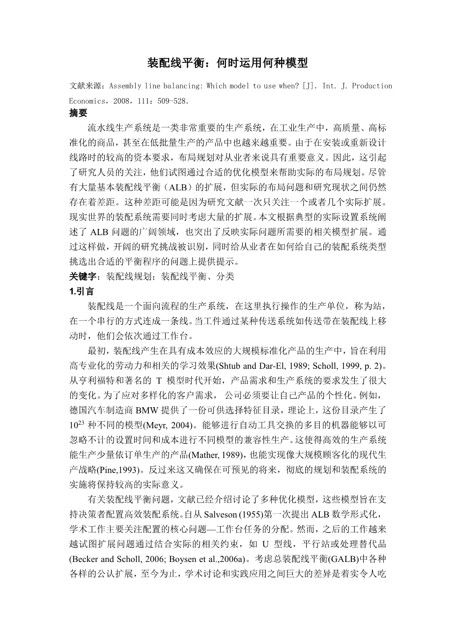 装配线平衡:何时运用何种模型外文翻译资料 2023-01-14 13:32:10 英语原文共 20 页,剩余内容已隐藏,支付完成后下载完整资料 英语原文共 7 页,剩余内容已隐藏,支付完成后下载完整资料 资料编号:[153802],资料为PDF文档或Word文档,PDF文档可免费转换为Word 您需要先支付 30元 才能查看全部内容!立即支付 发小红书推广免费获取该资料资格。点击链接进入获取推广文案即可: Ai一键组稿 | 降AI率 | 降重复率 | 论文一键排版 PREVIOUS NEXT 您可能感兴趣的文章 关系契约在跨国供应链中的作用机制研究文献综述 扬子江城市群生态环境脆弱性及其驱动力研究文献综述 生鲜品冷链物流运作模式调研与改进研究文献综述 基于HAZOP-LOPA方法的冷链物流金融风险分析开题报告 基于服务供应链的港口服务供应商选择评价研究开题报告 民营快递加盟连锁模式研究——以圆通速递为例开题报告 共享经济下的供应链运作模式研究开题报告 基于拉格朗日松弛的运输调度问题求解文献综述 供应链中供需协调策略及价格折扣订货模型研究文献综述 生态供应链创新 绩效分析:一个案例开题报告