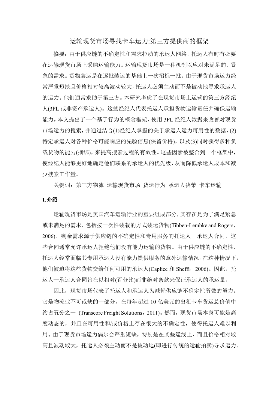 运输现货市场寻找卡车运力:第三方提供商的框架外文翻译资料