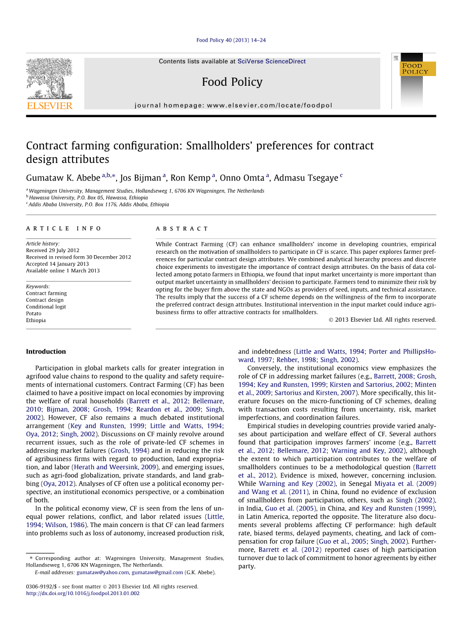 Gumataw K.Abebe, Jos Bijman,Ron Kemp, Onno Omta,Admasu Tsegaye