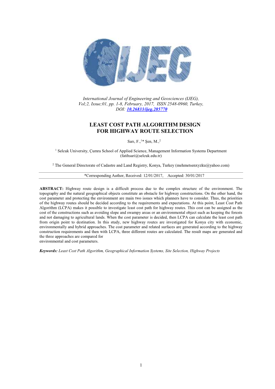 摘要:公路线路设计是一个复杂的环境结构设计过程。地形和自然地理对象构成了公路建设的障碍。另一方面,成本参数和环境保护是规划人员必须考虑的两个主要问题。因此,公路路线的优先次序应根据要求和期望来决定。在这一点上,最小成本路径算法(LCPA)使得研究公路路线的最小成本路径成为可能。这一成本可以分配为建设成本,如避免斜坡和沼泽地区或环境目标,例如保护森林和不破坏农田。当成本参数确定后,LCPA可以计算出从起点到终点的最小成本路径。在本研究中,采用经济、环境和混合方法对科尼亚市新的公路路线进行了调查。根据公路施工要求生成成本参数和相关表面,然后利用LCPA计算出三条不同的线路。生成了结果图,并对三种方法从环境及成本参数进行了比较。