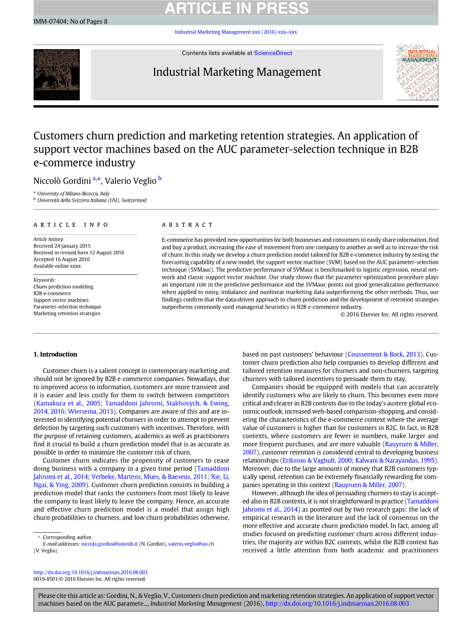 然而,现存文献表明这些模型的结果很少且经常是冲突的,特别是在B2B环境下。而且考虑到B2B环境客户少、交易量大的特征,我们更加需要针对B2B环境开发一个流失预测模型。本文的研究中我们介绍了B2B环境下流失预测的支持向量机,评估了它的预测能力并且将它与逻辑回归和神经网络作出了比较。